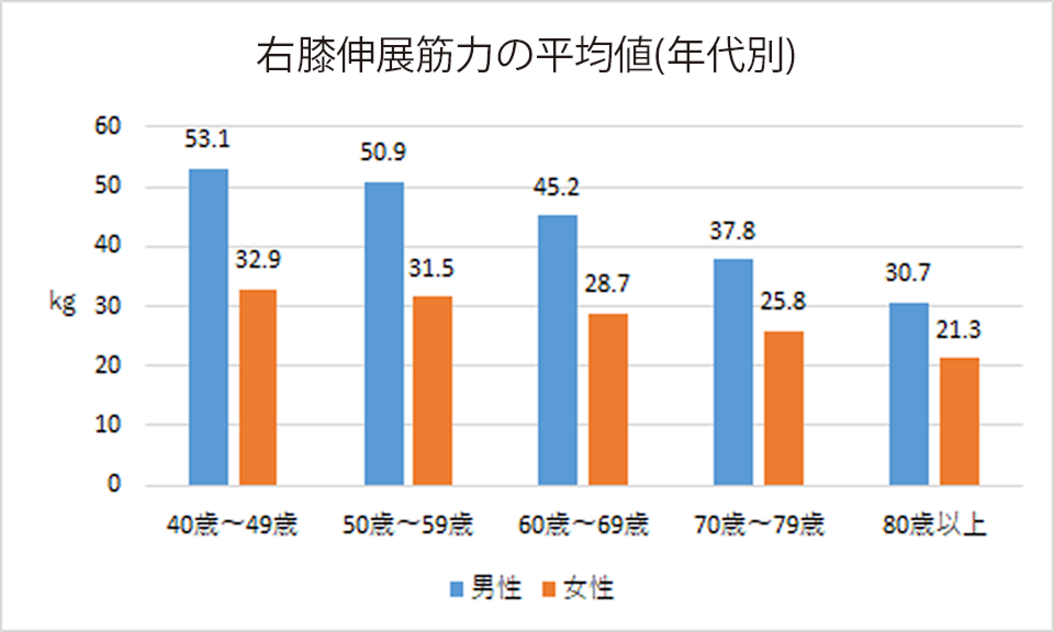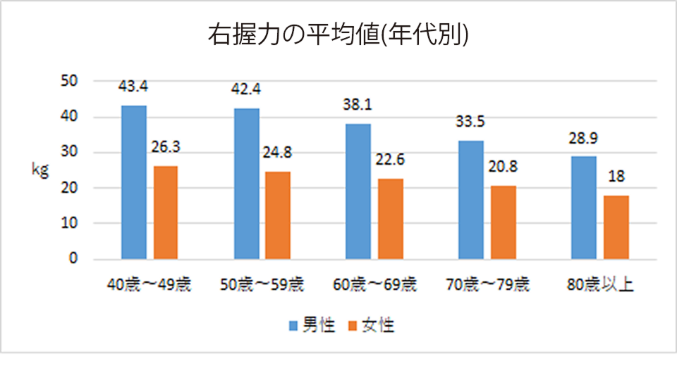 筋力は、上肢の力(握力等)より下肢の力(膝を伸ばす力等)の方が速く低下